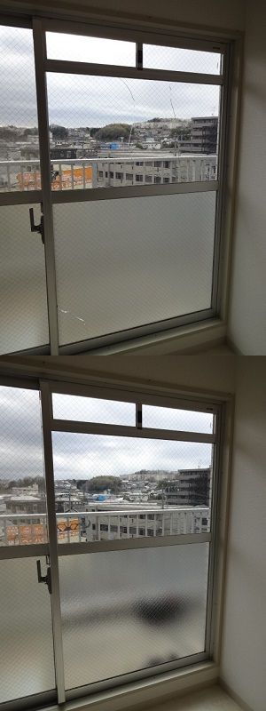 | 作業内容 | ・マンション6F掃出し窓のガラス修理3枚。 |